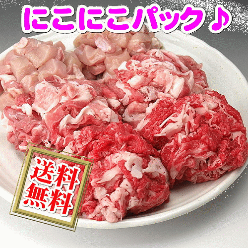 送料無料☆毎日のお料理に♪ 牛肉・豚肉・鶏肉のこま切れ・切り落とし にこにこパック!1.2kg入!