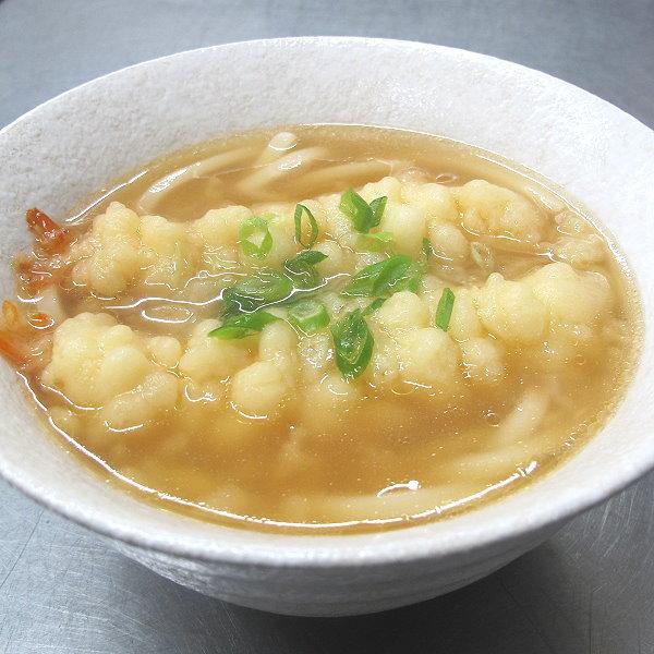 (2)うどん面を下にして沸かしたつゆの中に入れて煮てください。
